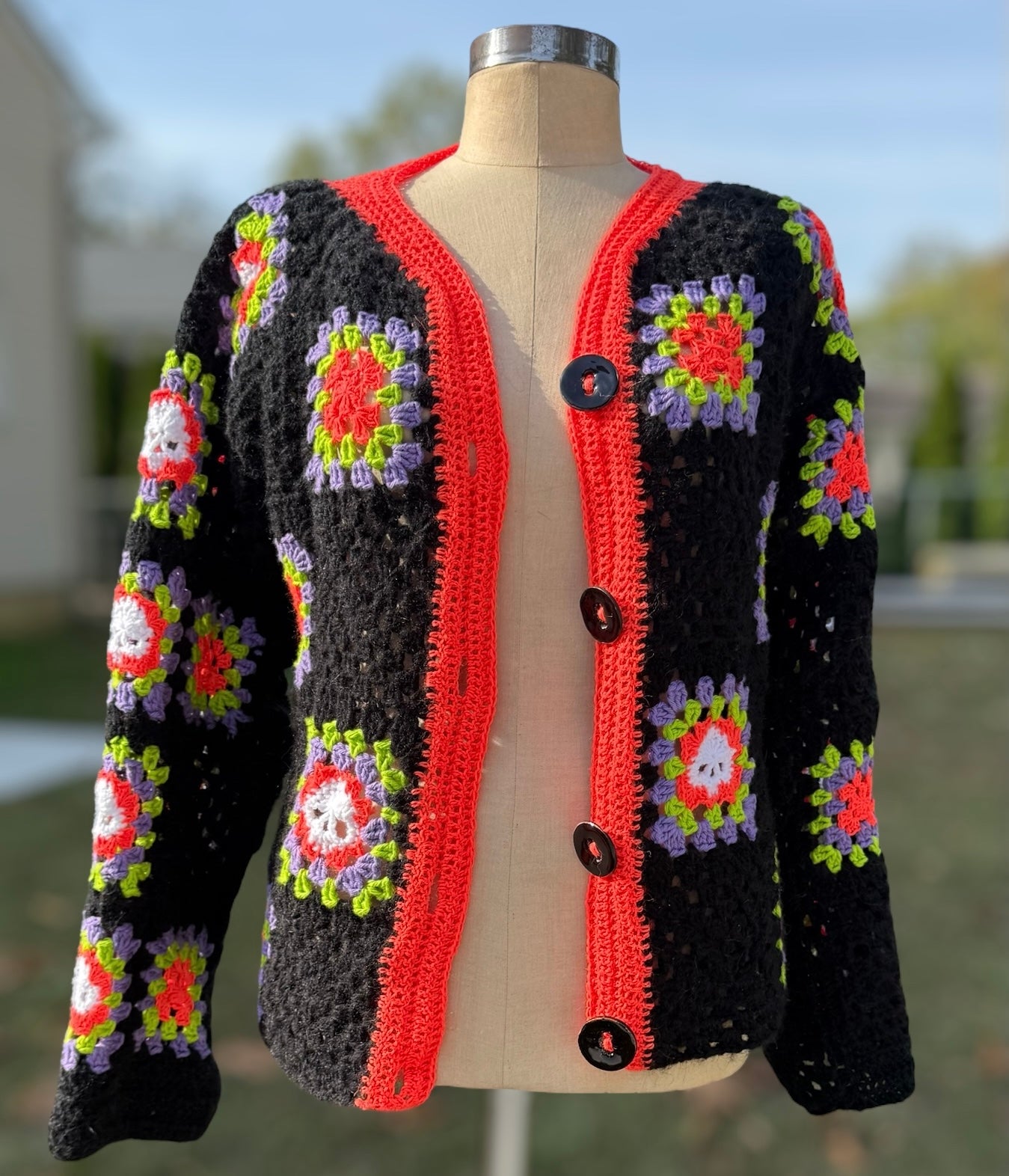 Get ready to spook up your wardrobe with our handmade Halloween theme cardigan! Made with a mix of cotton and mohair yarn, this cardigan is not only cozy but also has a fuzzy texture that will make you stand out. Perfect for adding a playful touch to any outfit. (Only available while supplies last!)
